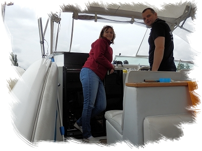 Selbstverständlich durfte mein Schwager, der alte Seebär, auch mal ans Steuer. Er musste ja schließlich beweisen, dass er auch mit so einem kleinen Boot, wie unserem, klar kommt. Denn auf der Ostsee ist er Größeres gewohnt.